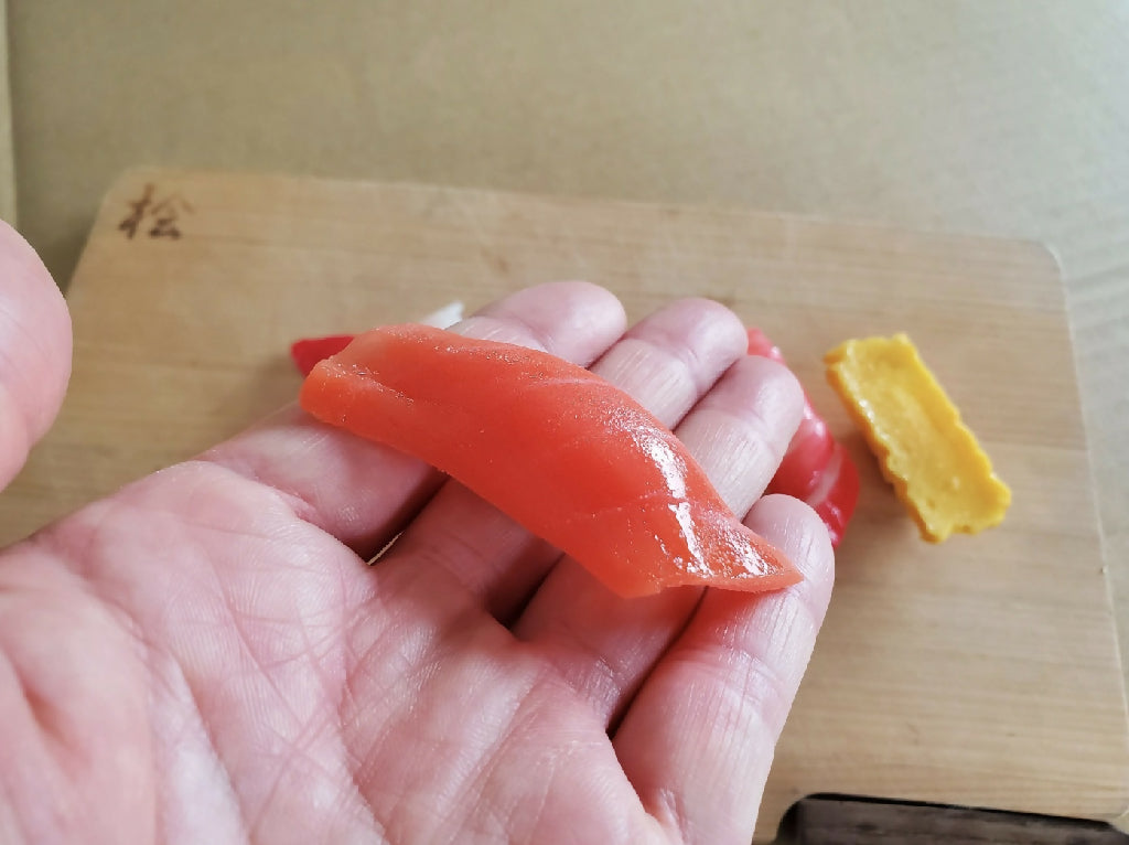 This realistic salmon nigiri sushi keychain is perfect for anyone who loves Japanese food!